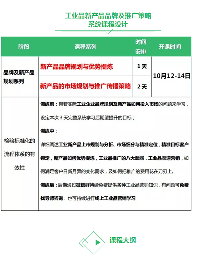 【新產(chǎn)品品牌及推廣開課預告】 10月12-14日 工業(yè)新產(chǎn)品市場規(guī)劃與推廣傳播策略公開課 點擊次數(shù):7074發(fā)布時間:2018-6-28 11:27:40 上一條:【營銷管控公開課預告】10月26-27日 深度營銷管控系列“工業(yè)品營銷管控”公開課!下一條:【大客戶營銷公開課預告】 9月14-16日 經(jīng)典工業(yè)品大客戶營銷系統(tǒng)公開課