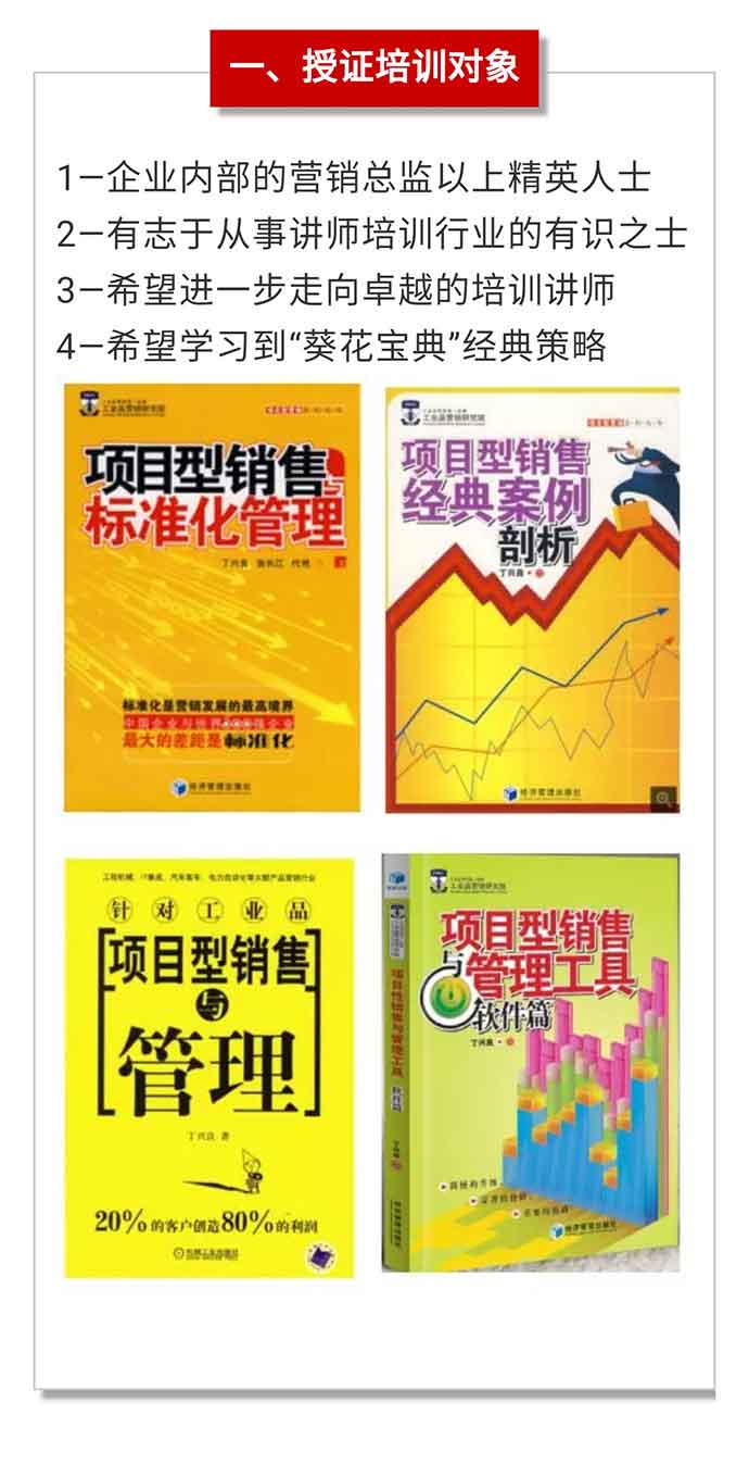 【公開課預(yù)告】2019年6月15-16日項(xiàng)目型銷售與標(biāo)準(zhǔn)化管理—講師授證班 點(diǎn)擊次數(shù):6495發(fā)布時(shí)間:2019-4-28 21:02:04 上一條:【公開課預(yù)告】2019年5月25—26日工業(yè)品營銷《做大單-靠團(tuán)隊(duì)靠系統(tǒng)》公開課!下一條:【公開課預(yù)告】2019年6月29—30日打造高績效的工業(yè)品營銷團(tuán)隊(duì)公開課