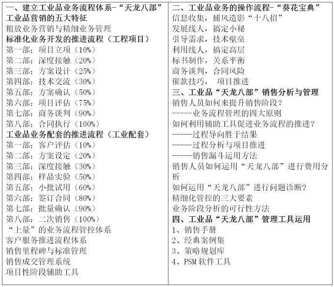 課程主題1:【建立標準化的工業(yè)品業(yè)務流程體系-—天龍八部】