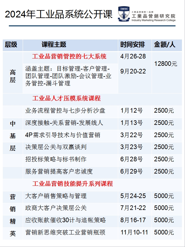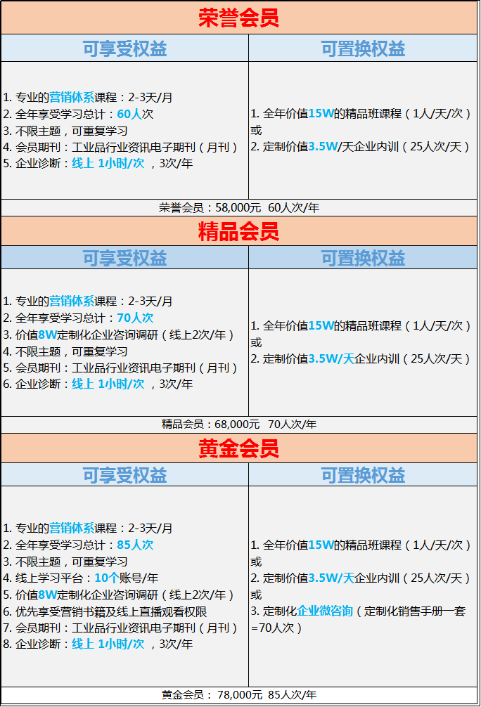 2024年工業(yè)品營(yíng)銷研究院推出會(huì)員購(gòu),特惠享不停!集公開課、企業(yè)內(nèi)訓(xùn)、企業(yè)微咨詢,線上學(xué)習(xí)帳號(hào)于一體,全方位解決工業(yè)企業(yè)發(fā)展困惑與難題!
