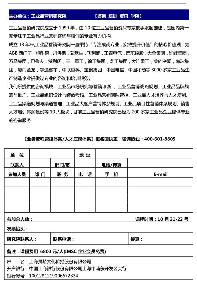 | 下一條:【往期公開課】10月28-30日營(yíng)銷中層經(jīng)理人才壓模訓(xùn)練系統(tǒng)公開班 |