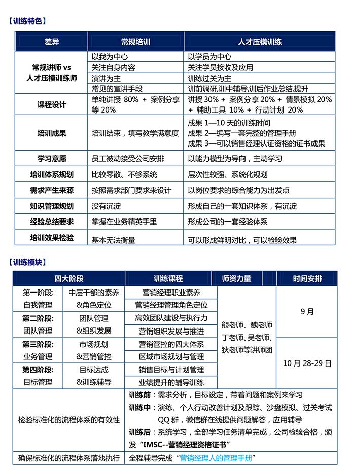 | 下一條:【往期公開課】營(yíng)銷中層經(jīng)理人才壓模訓(xùn)練系統(tǒng)公開班11月4-6日 |