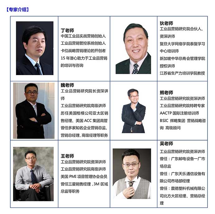 工業(yè)品營(yíng)銷研究院院長(zhǎng)領(lǐng)銜的6位專家顧問(wèn)團(tuán),均10年以上行業(yè)背景,合力全程教練式輔導(dǎo)