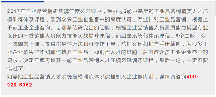 【12月22—24日】【年底最后一輪】工業(yè)品營(yíng)銷精英人才能力提升系統(tǒng)公開(kāi)課第二階段即將開(kāi)課!