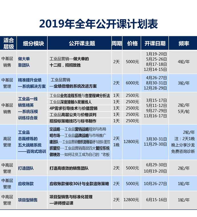 【培訓(xùn)計(jì)劃】2019年 工業(yè)品營(yíng)銷研究院培訓(xùn)計(jì)劃