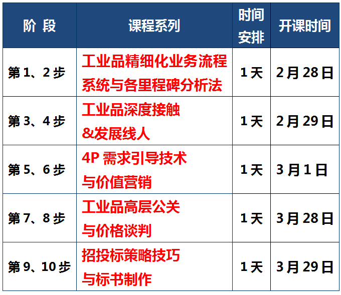 構(gòu)建科學(xué)化系統(tǒng)化工業(yè)品營銷流程+解析業(yè)務(wù)里程碑任務(wù)清單+輔導(dǎo)落地工具方法,快速批量化打造優(yōu)秀工業(yè)品精英人才。