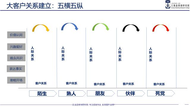 本次課程的特色亮點:工業(yè)品營銷研究院首席顧問丁興良院長從大客戶攻關(guān)的六句真言、大客戶建立關(guān)系的三個層次、大客戶關(guān)系建立的“五橫五縱”、大客戶項目簽單的“三個層次二個維度”、大客戶價格談判的“鐵三角”、大客戶服務(wù)的五個層次等;