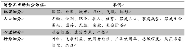 消費(fèi)品市場細(xì)分依據(jù)舉例