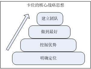 導(dǎo)語(yǔ):卡位戰(zhàn)略的核心思想是十六個(gè)字:明確定位、挖掘優(yōu)勢(shì)、做到最好、建立團(tuán)隊(duì)。