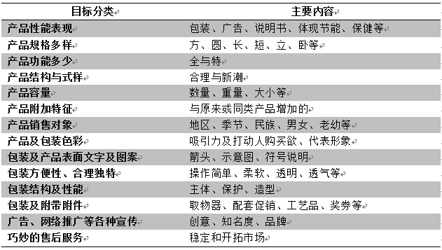 表1 產(chǎn)品包裝與策劃目標(biāo)分類(lèi)