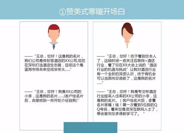 ①開門見山:首次面談客戶,3分鐘把“我是誰?我做過什么?我和你合作的目的是什么?”表達(dá)清楚