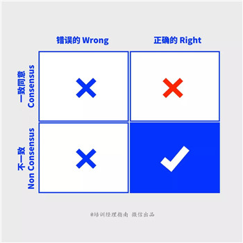 在互聯(lián)網(wǎng)及資訊高速發(fā)展的今天,沒有什么比學(xué)會獨立思考更重要了,不管你是大公司的CEO,還是初創(chuàng)公司的創(chuàng)始人,不管你是公司的管理者還是一名普通的技術(shù)人員,如果你想從眾多的競品中脫穎而出,你必須擺脫“共識”的陷阱,做出正確的,但是不符合大眾邏輯的決策,這張圖請牢記在心中,并時刻提醒自己。