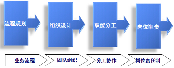 (2)組織設計:其次根據(jù)規(guī)劃出來的流程,按照業(yè)務的需求進行部門的設置,最后構建團隊組織。