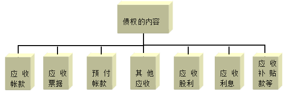 從財(cái)會(huì)的角度看,債權(quán)是指單位未來收取款項(xiàng)的權(quán)利,其主要包括以下內(nèi)容。如圖: