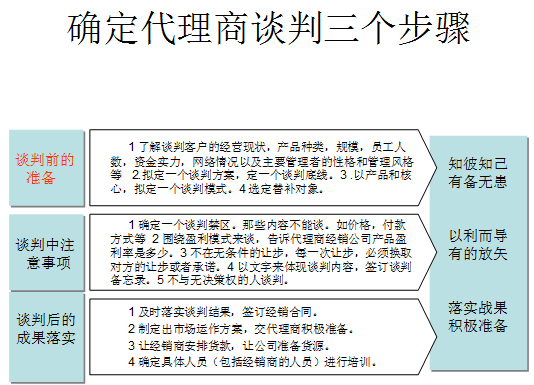 工業(yè)品的營銷渠道的常見模式為分四大類型:大客戶渠道,項(xiàng)目型渠道,代理商渠道和直營型渠道。(見圖表)項(xiàng)目型渠道的介紹已在前面重點(diǎn)闡述,在這里就不做介紹。![]() 針對(duì)這四種類型,工業(yè)品企業(yè)來如何設(shè)計(jì)自己的營銷渠道模塊呢? 5.1 企業(yè)的直營渠道設(shè)計(jì)模型 工業(yè)品生產(chǎn)企業(yè)在直營管理中存在的問題點(diǎn)還很多,如銷售人員綜合素質(zhì)參差不齊,人員流動(dòng)性大,運(yùn)作流程的缺失,售后服務(wù)的不完善等等。在這里就不一一加以闡述。我們重點(diǎn)分析如何建立起企業(yè)的直營系統(tǒng)呢?主要有五大步驟: 第一、建立客戶信息資料庫。 一般工業(yè)品企業(yè)客戶市場(chǎng)信息來源過于三個(gè)方面:一是銷售人員信息收集。二是公眾信息的匯總。三行業(yè)內(nèi)信息的采集。針對(duì)市場(chǎng)競(jìng)爭(zhēng)白熱化以及同質(zhì)化嚴(yán)重的市場(chǎng),這幾個(gè)方便的信息來源明顯的不夠的。企業(yè)競(jìng)爭(zhēng)中占據(jù)主導(dǎo)地位,往往在于領(lǐng)先小步。這微弱的領(lǐng)先優(yōu)勢(shì),往往在信息第一時(shí)間內(nèi)獲得。 第二、組建銷售團(tuán)隊(duì)。 銷售團(tuán)隊(duì)的組建關(guān)鍵要素在于“人”。中國企業(yè)現(xiàn)有銷售隊(duì)伍組織結(jié)構(gòu)較多見的是區(qū)域銷售結(jié)構(gòu)和產(chǎn)品銷售結(jié)構(gòu)。大中型企業(yè)由于銷售區(qū)域較大,產(chǎn)品種類較多,會(huì)采用兩種結(jié)合的組織結(jié)構(gòu)。有一定規(guī)模的企業(yè)無論是采取代理,還是終端銷售,首先都會(huì)分區(qū)域管理,設(shè)置區(qū)域總代理或設(shè)立區(qū)域辦事處。這種結(jié)構(gòu)形式便于管理,各區(qū)域設(shè)總負(fù)責(zé)人,管理效率比較高。但有一個(gè)較突出的問題,在區(qū)域劃分和區(qū)域之間的協(xié)調(diào)上處理得不是很好,就會(huì)引起一些糾紛,影響銷售,影響銷售隊(duì)伍的團(tuán)結(jié),導(dǎo)致削弱整體戰(zhàn)斗力。 5.2 大客戶的渠道設(shè)計(jì)模型 大客戶渠道的特點(diǎn): 第一、穩(wěn)定性強(qiáng)。企業(yè)的大客戶往往是企業(yè)穩(wěn)固長久的合作伙伴。彼此的信任以及利益的共同體,使得生產(chǎn)企業(yè)與大客戶之間建立起了戰(zhàn)略合作伙伴關(guān)系。 第二、銷量的比重大。大客戶的銷售量往往占據(jù)企業(yè)50%以上的比重。 第三、大客戶的市場(chǎng)運(yùn)作成本低。因大客戶生產(chǎn)需求的特點(diǎn),對(duì)產(chǎn)品規(guī)格,質(zhì)量要求,發(fā)貨周期都有基本的穩(wěn)定。以便于企業(yè)合理安排生產(chǎn)計(jì)劃,控制成本。 但大客戶渠道也存在著以下不足: 第一、大客戶的需求量受行業(yè)外部環(huán)境以及自身經(jīng)營狀況的影響。企業(yè)難以掌控和把握。 第二、企業(yè)對(duì)大客戶的依賴性,往往會(huì)導(dǎo)致應(yīng)收賬款的發(fā)生。 第三、對(duì)大客戶產(chǎn)品的供貨價(jià)格,往往會(huì)依據(jù)市場(chǎng)行情的波動(dòng)而變化。價(jià)格因素往往會(huì)成為企業(yè)與大客戶發(fā)生爭(zhēng)執(zhí)的焦點(diǎn)。 針對(duì)大客戶的特點(diǎn)在渠道設(shè)計(jì)上,可遵循以下三點(diǎn)原則: 第一、依據(jù)行業(yè)建立起自己產(chǎn)品的客戶群。 工業(yè)品的適用面往往是比較廣泛的,適用各個(gè)不同的行業(yè)。比如不銹鋼管,可適用于石化,食品,核電等不同行業(yè)。在大客戶拓展中,除了產(chǎn)品的價(jià)格,品質(zhì),供貨周期等因素之外,樣板客戶的影響力也起著重要的作用。依據(jù)某個(gè)行業(yè)建立起的優(yōu)勢(shì),會(huì)在某個(gè)范圍之內(nèi),建立起產(chǎn)品的品牌優(yōu)勢(shì)。充分利用資源,拓展大客戶數(shù)量。 客戶的開發(fā),一個(gè)關(guān)鍵環(huán)節(jié)是“借勢(shì)”。 孫子兵法曰:“善戰(zhàn)者,求之于勢(shì),不責(zé)于人。故能擇人而任勢(shì)”正所謂“無勢(shì)者造勢(shì),無力者借勢(shì),有勢(shì)者用勢(shì)”。大客戶的行業(yè)開發(fā),首先得給自己造勢(shì);在價(jià)格,品質(zhì),或者服務(wù)等某一個(gè)方面顯示出其他同類產(chǎn)品無可比擬和超越的優(yōu)勢(shì);在行業(yè)中形成共識(shí)。這就是造勢(shì)。造勢(shì)的手段有媒體的宣傳,客戶的口碑,有影響事件的傳播等。將勢(shì)造得越大,對(duì)產(chǎn)品渠道的拓展推動(dòng)力就越大。因此在行業(yè)內(nèi)建立其大客戶渠道一般有三個(gè)步驟:一、是建立樣板客戶,擴(kuò)大影響力。二、擴(kuò)展客戶群體,建立起初級(jí)的銷售網(wǎng)絡(luò)。三、是對(duì)客戶進(jìn)行篩選,選擇一批優(yōu)勢(shì)客戶。組成穩(wěn)固的銷售網(wǎng)絡(luò)體系。 在行業(yè)內(nèi)建立起大客戶銷售渠道的關(guān)鍵要素是:服務(wù),信譽(yù)和價(jià)格。企業(yè)把握住這三點(diǎn)要素,就能在某一行業(yè)內(nèi)占據(jù)優(yōu)勢(shì)。 第二、依據(jù)地區(qū)劃分,來建立自己產(chǎn)品的大客戶群。 在某一地區(qū)范圍之內(nèi),建立起自己密集的大客戶群。其利用是在該地區(qū)形成的社會(huì)關(guān)系優(yōu)勢(shì)。利用企業(yè)或銷售人員在某一地區(qū)的公共社會(huì)關(guān)系或威望,發(fā)展出一批大